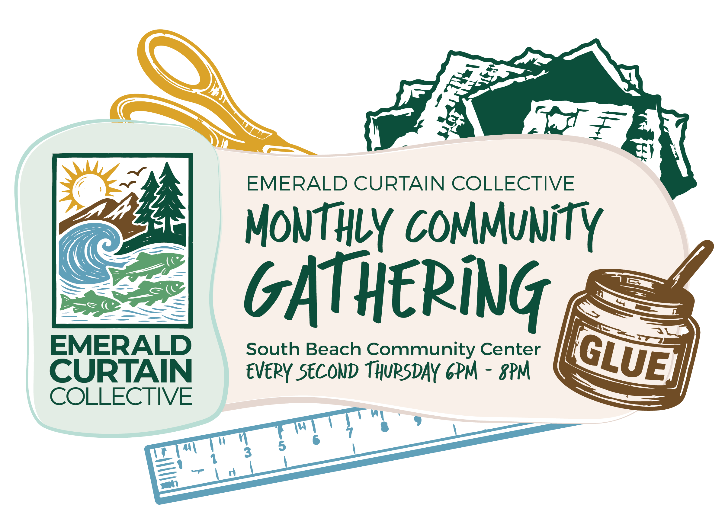 Join Emerald Curtain Collective for our monthly gathering at the South Beach Community Center. These evenings are a chance to strengthen connections within our community of environmental stewards & artists, and to welcome new volunteers. Each month we feature a simple, low-impact activity such as crafts, cooking, or documentary screenings. These activities give us time […]
