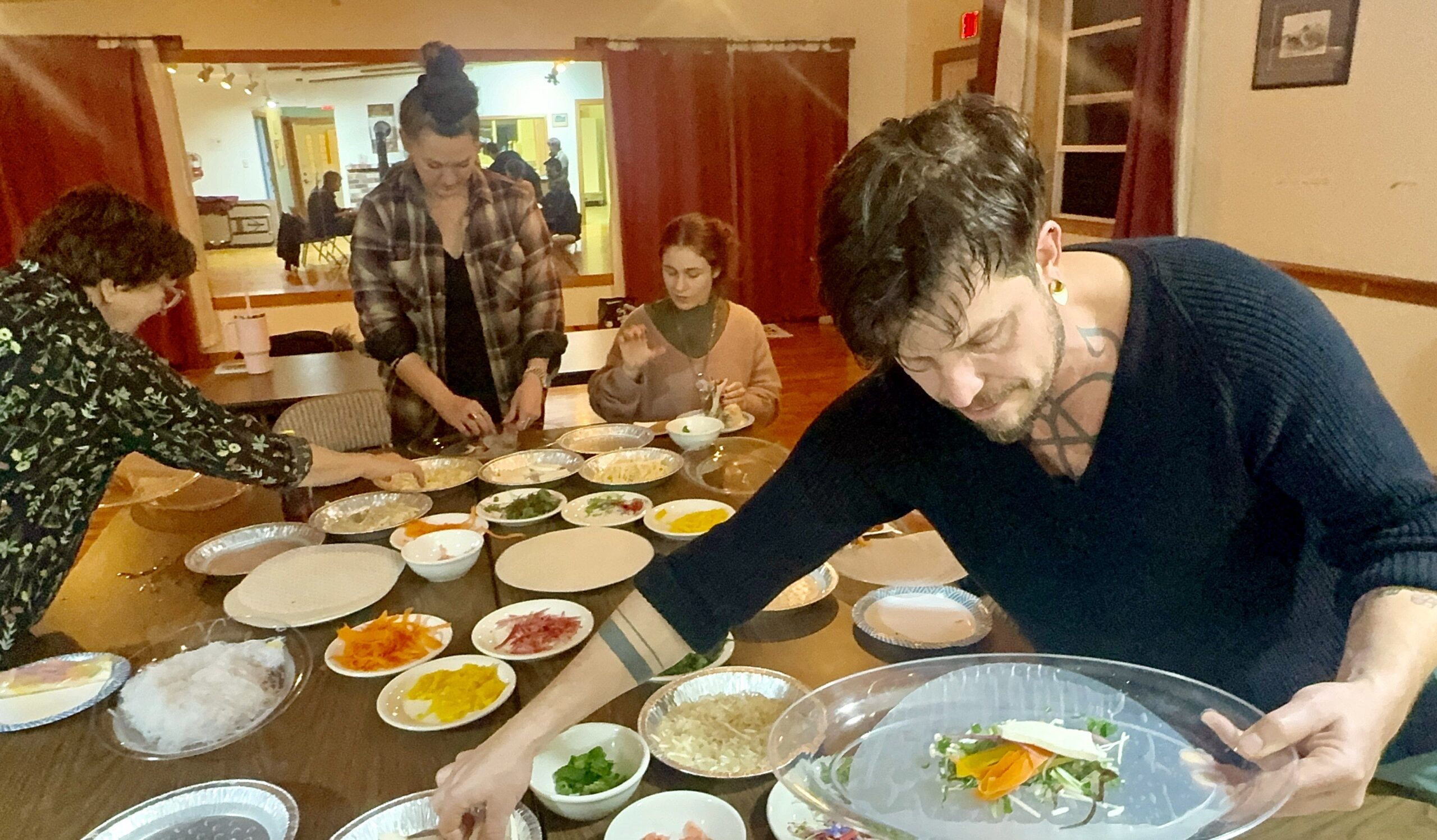 Our December Gathering was a humble and delicious experience. We got together and made Thai salad rolls! Everyone caught on pretty quick and had no problem devouring the new skill they had learned!